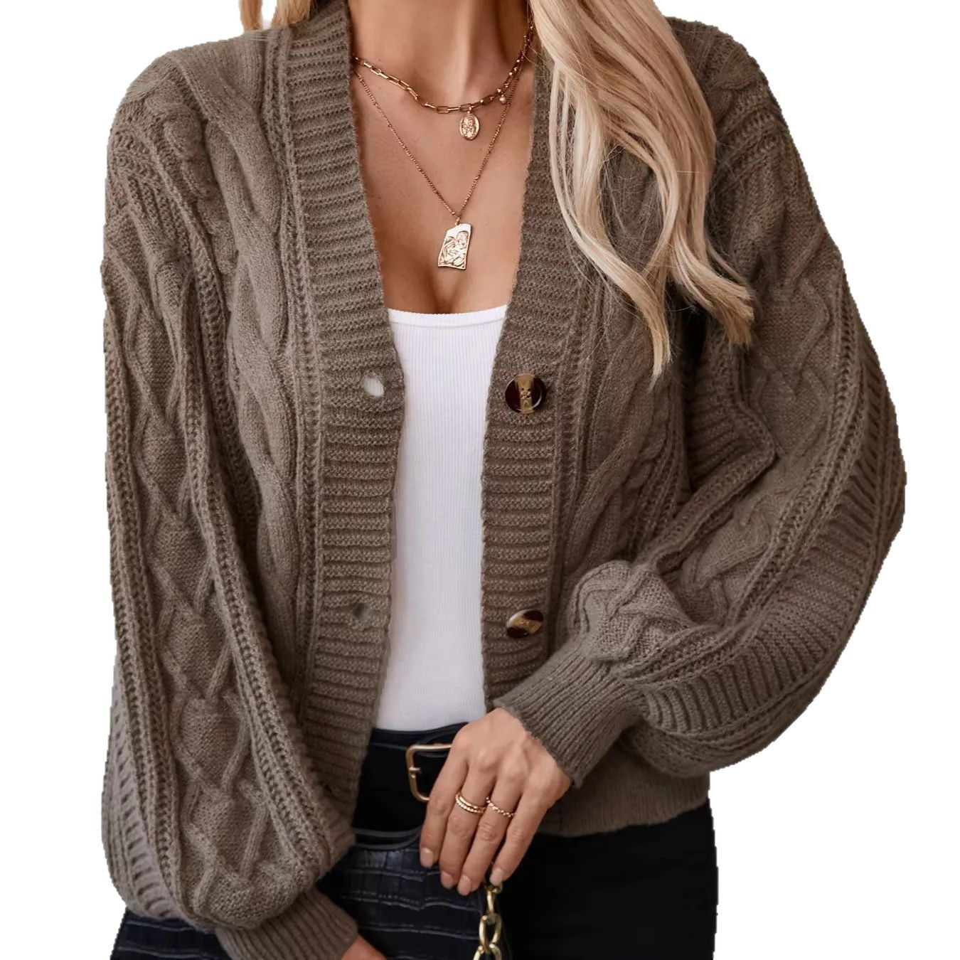 Dames Gros Tricot Cardigan avec Boutons À Drehknöpfen Chic und Stil