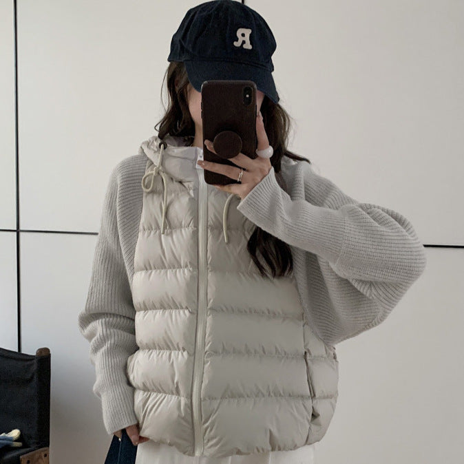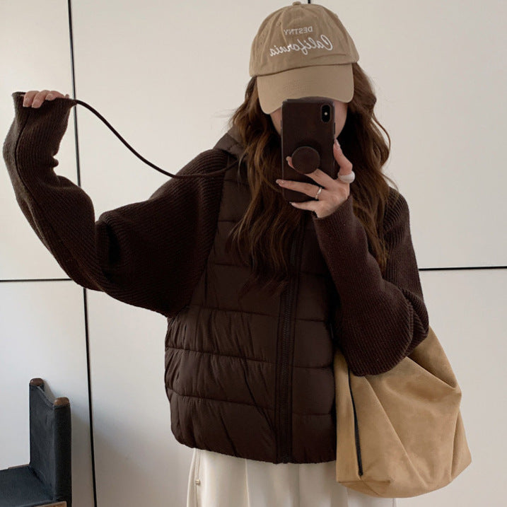 - Design élégant : La combinaison de tricot et de matériau matelassé donne un look moderne.