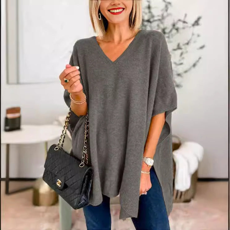 Dames pull poncho décontracté avec encolure en V et manches raglan Chic und Stil
