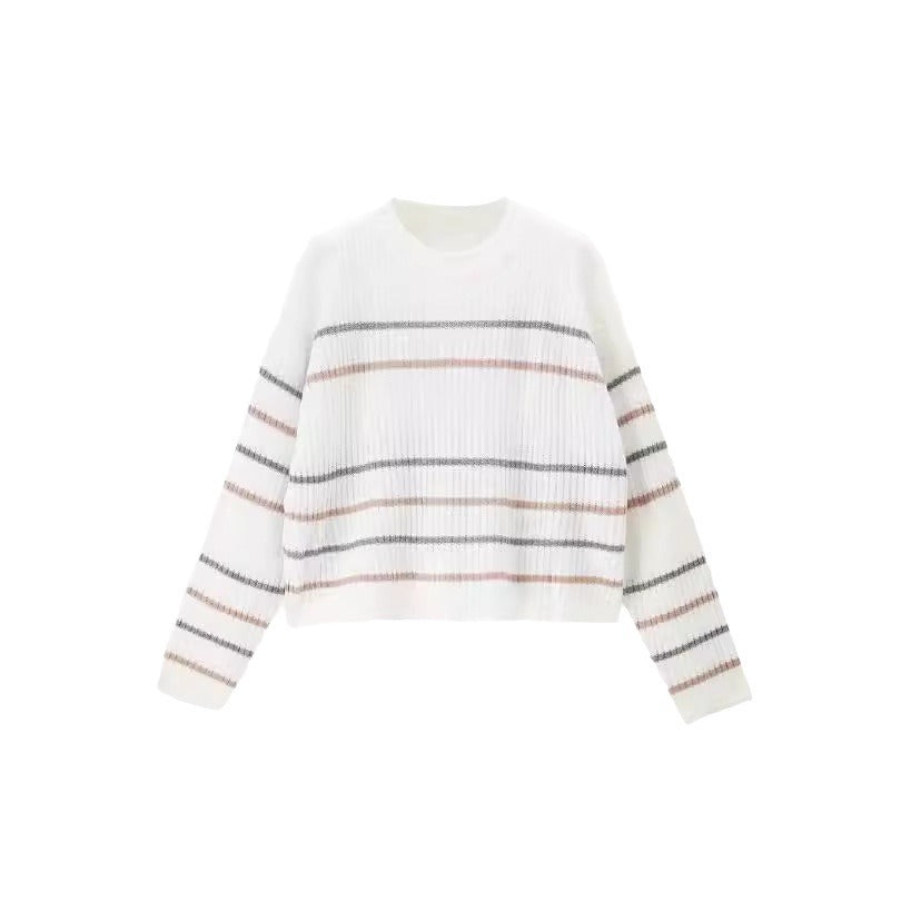 Dames Pull en tricot décontracté avec motif rayé à la mode Chic und Stil