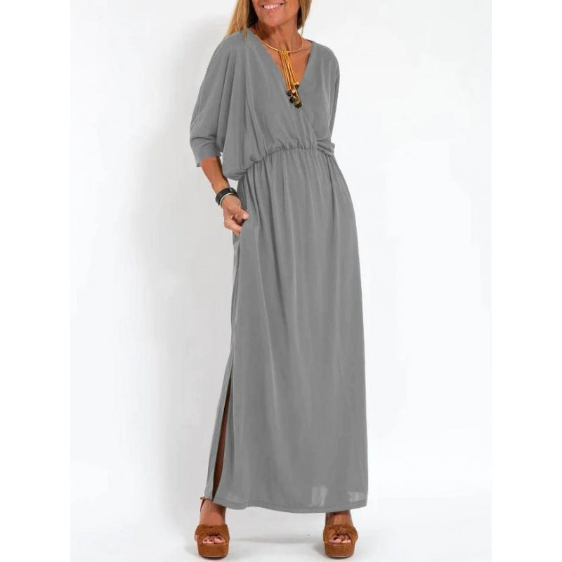 Robe maxi décontractée pour femmes avec décolleté en V et fentes latérales Chic und Stil