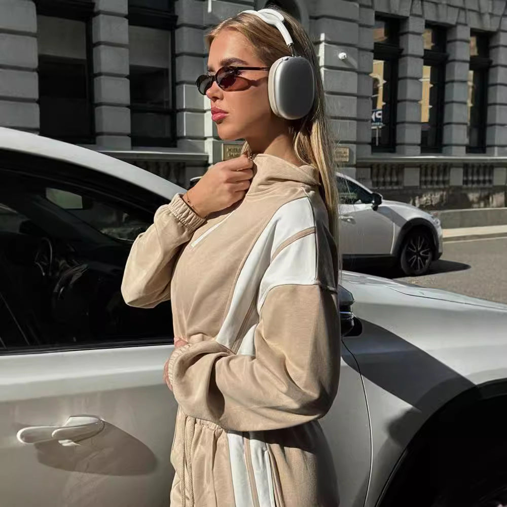 • Design à la mode : La combinaison de la capuche et de la fermeture éclair donne au set un look moderne et sportif.