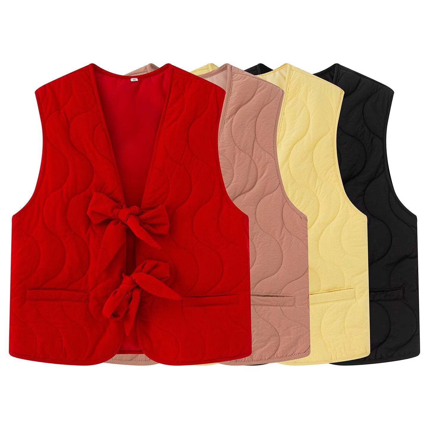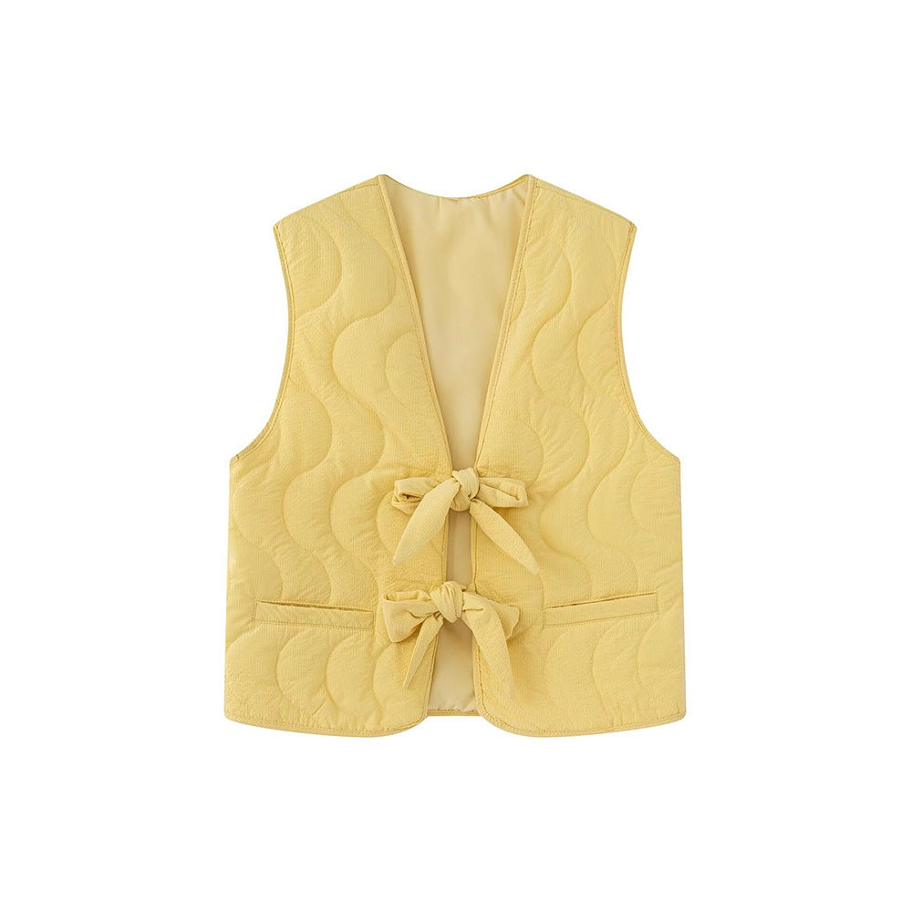 Dames gilet matelassé avec ceinture nouée double et poches latérales pratiques Chic und Stil