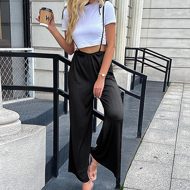 Dames Combinaison Décontractée à Pattes Larges avec Bretelles Ajustables Chic und Stil