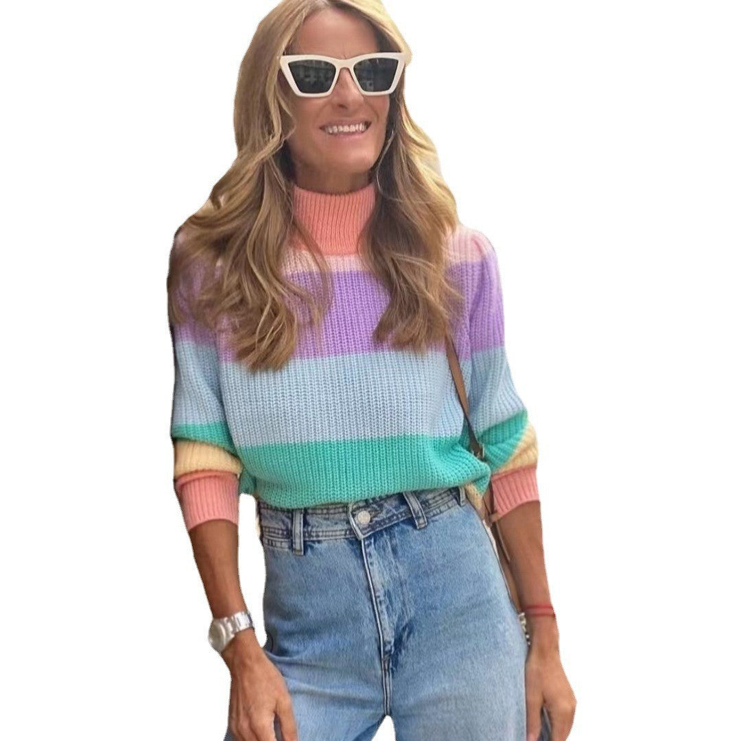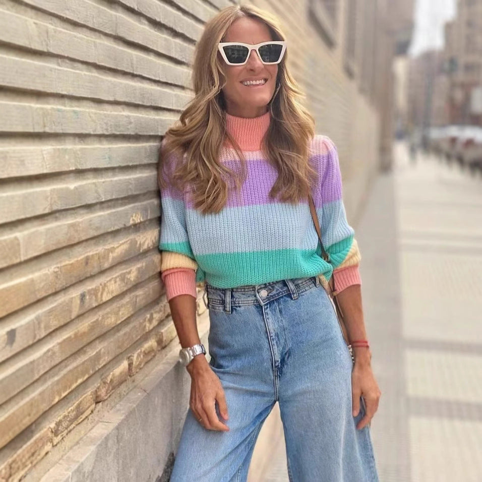 Découvrez notre pull en tricot douillet pour femmes avec un design colorblock à la mode. Ce haut de haute qualité allie style et confort, et est le complément parfait de votre garde-robe de printemps.