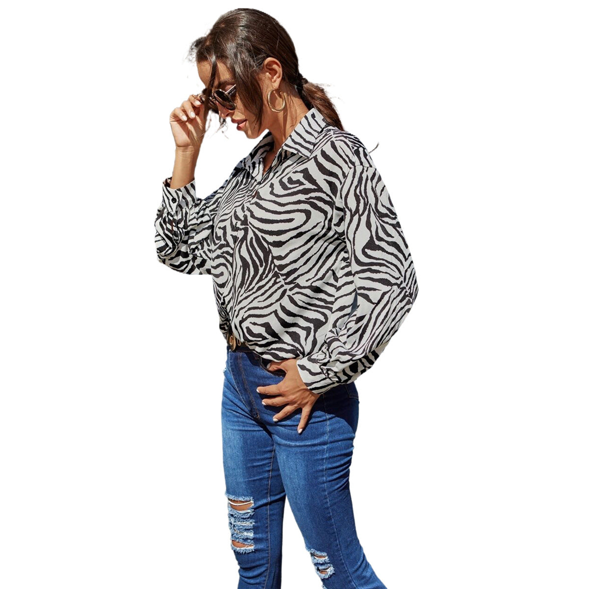 Découvrez notre chemise pour femmes à manches courtes tendance avec un imprimé zèbre accrocheur, qui ajoute une touche spéciale à votre tenue d'été. Cette chemise élégante allie confort et style en parfaite harmonie.