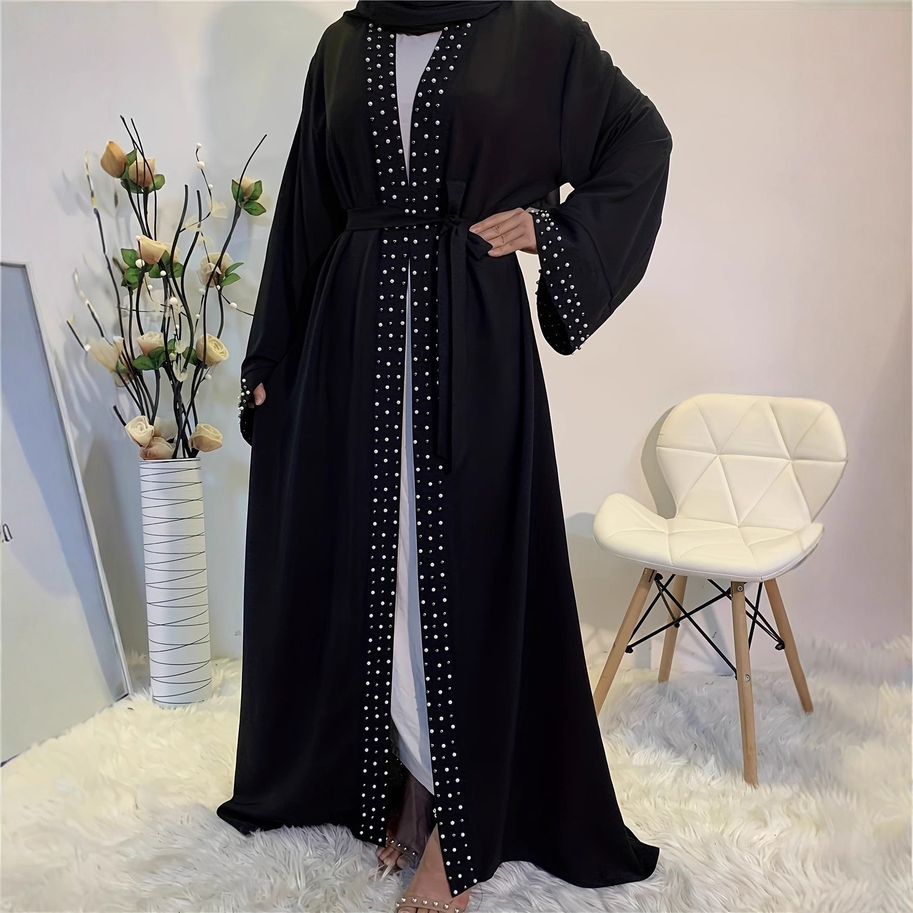 Dames élégante Abaya avec des détails en strass élaborés et une ceinture à la taille Chic und Stil