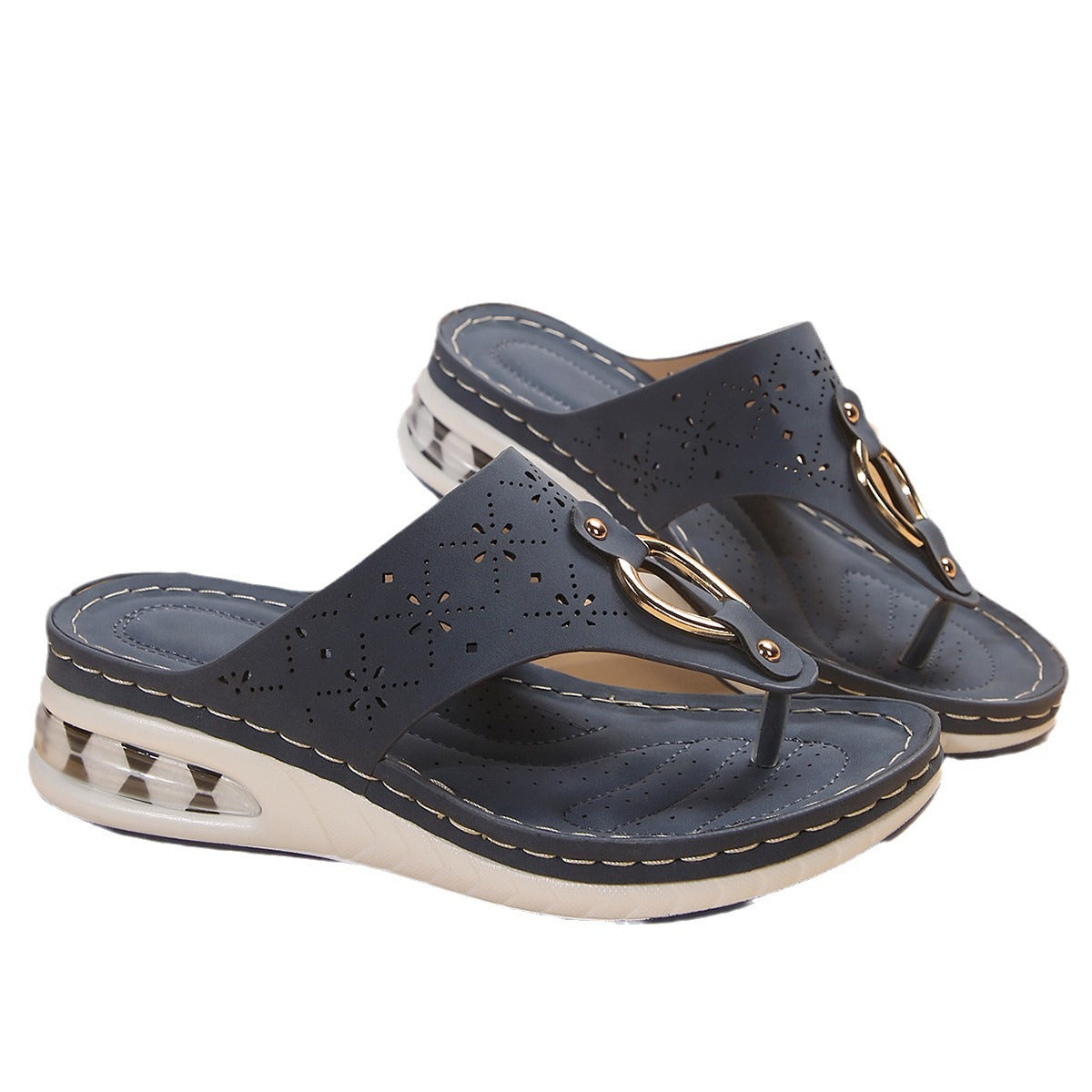 Dames Décoratifs Perforés Tongs Chic und Stil