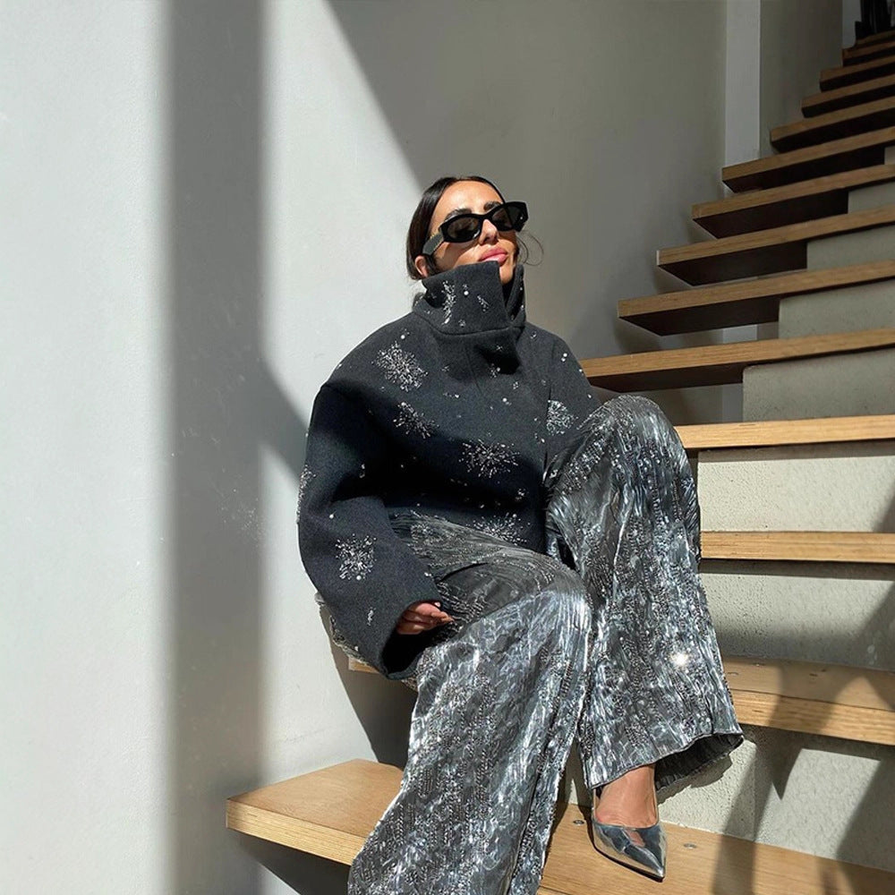 - Détails de broderie uniques : Décorée avec des broderies artistiques qui reflètent la lumière scintillante et donnent à la veste une touche glamour.