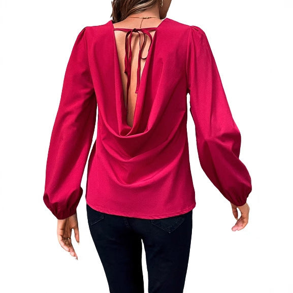 Dames Haut élégant avec décolleté en V profond et découpe au dos Chic und Stil