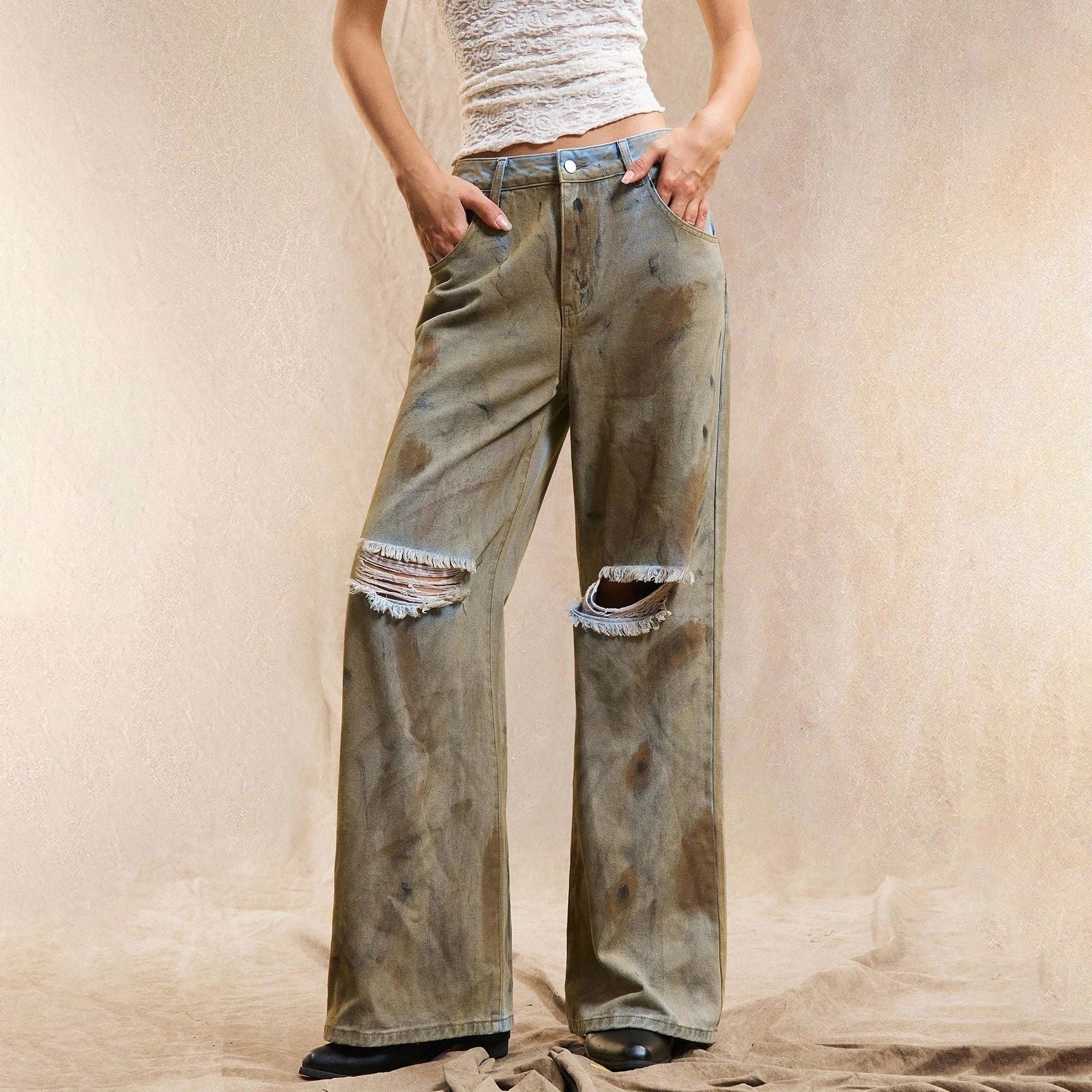 Dames jeans larges tendance avec déchirures et bords effilochés Chic und Stil