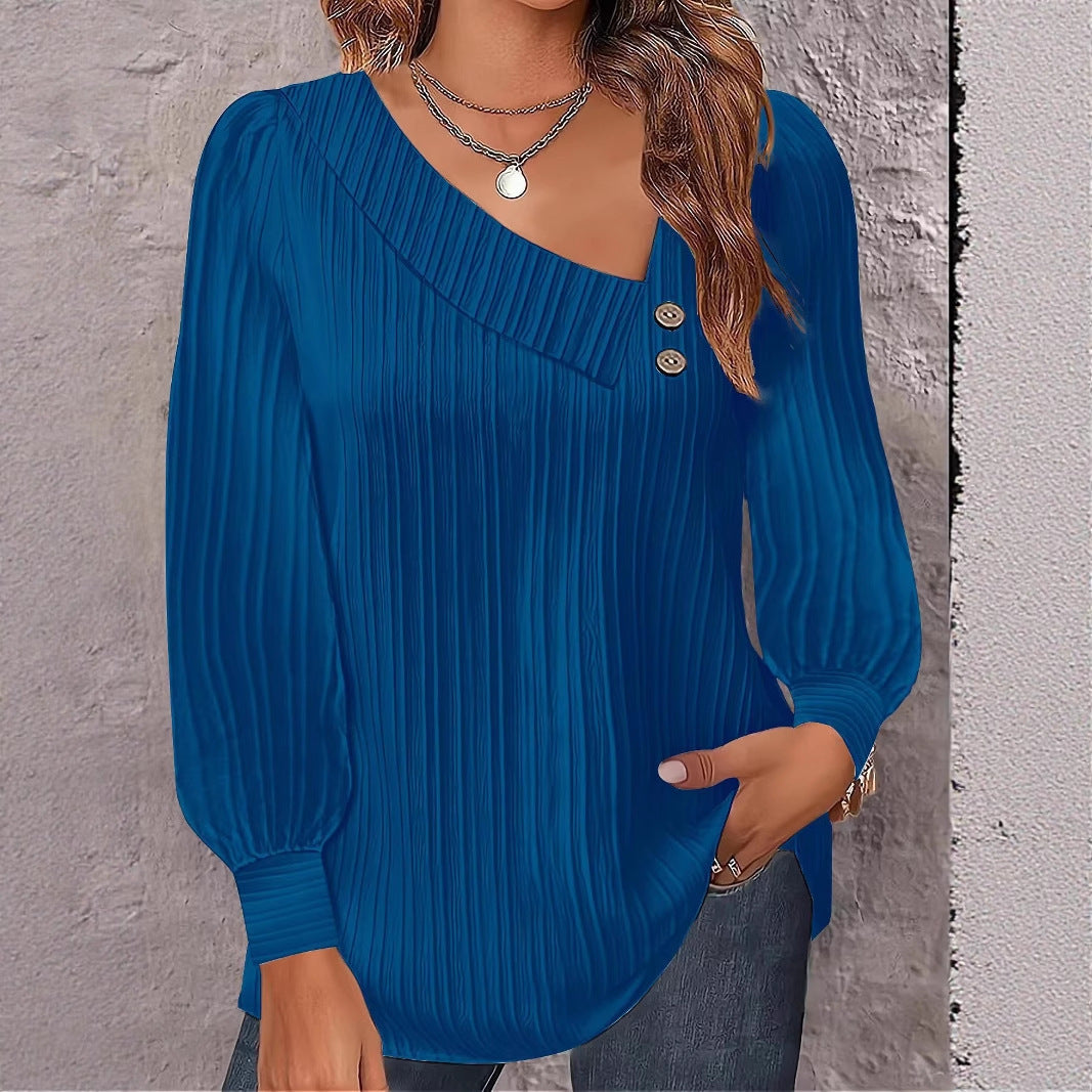 Dames Haut élégant et décontracté avec décolleté asymétrique et détails de boutons Chic und Stil