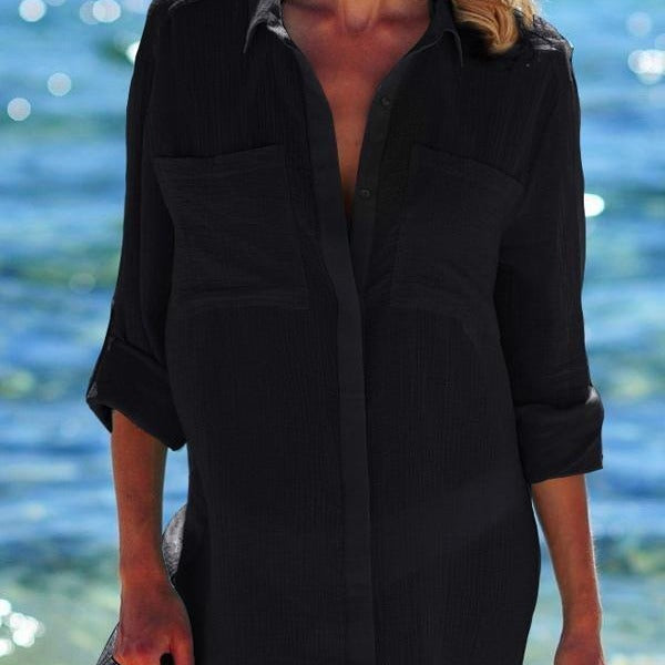 Que vous soyez à la plage, à la piscine ou dehors par une journée ensoleillée, cette chemise Cover-Up est conçue pour offrir à la fois confort et attrait chic, et constitue un ajout polyvalent à votre collection estivale.