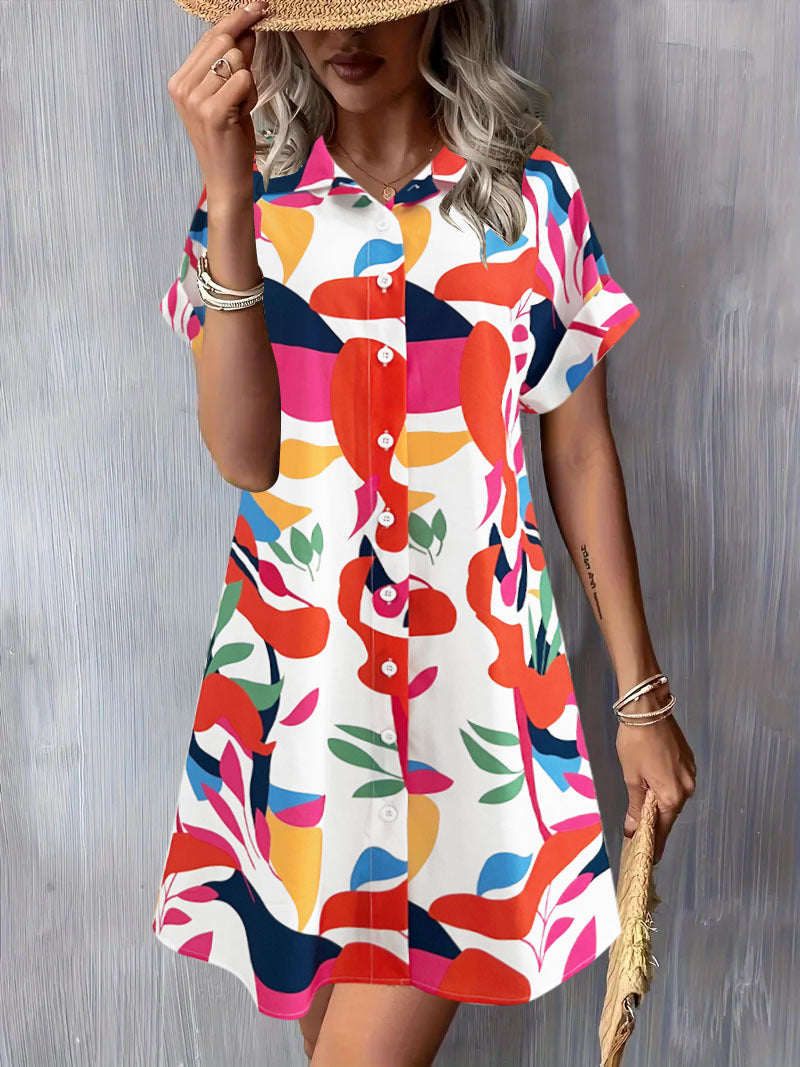 Robe chemise à manches courtes pour femmes, élégante et confortable
