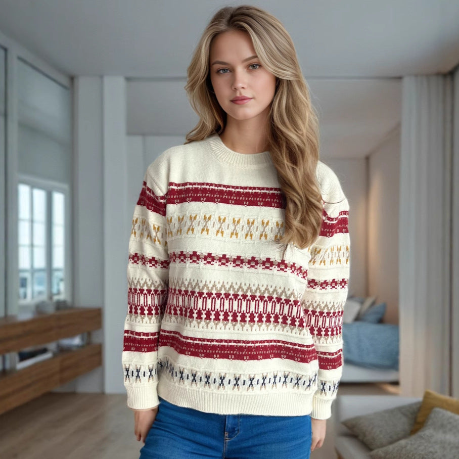 Pull en tricot doux pour femmes avec motif folklorique et col montant Chic und Stil