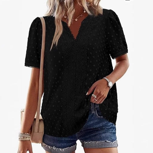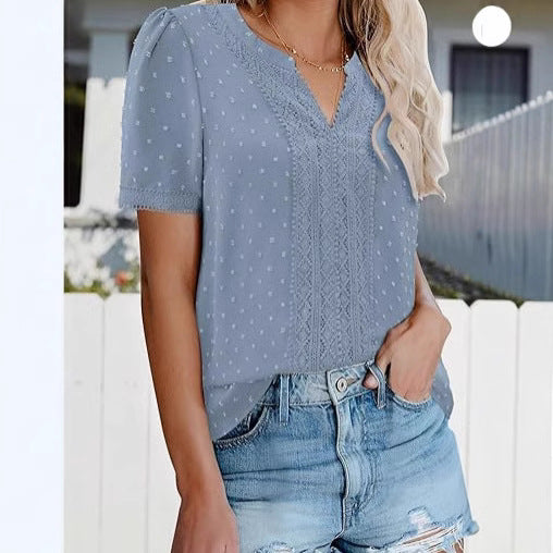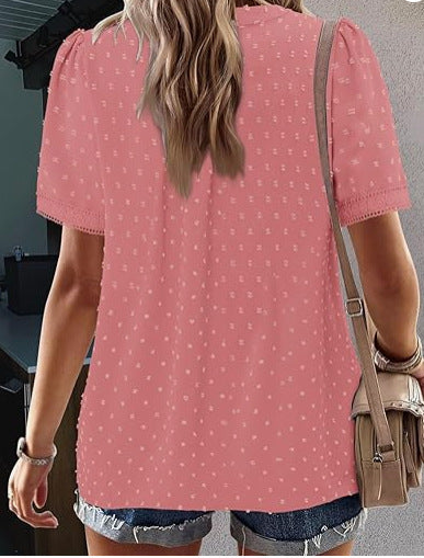 - Design chic : Le délicat motif à pois apporte une touche de sophistication à votre look décontracté.