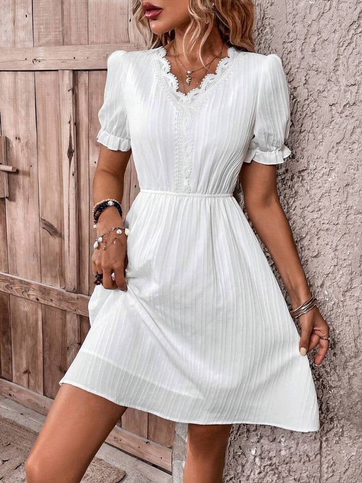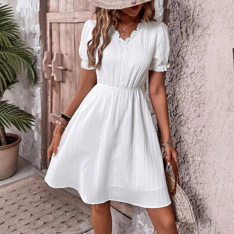 Cette robe mini élégante pour femmes avec corsage plissé de Chic und Stil est parfaite pour une variété d'occasions, des brunchs décontractés aux soirées romantiques. Fabriquée avec un magnifique design plissé, cette robe dispose de charmantes manches bouffantes et d'une délicate bordure en dentelle qui ajoute une touche de féminité.