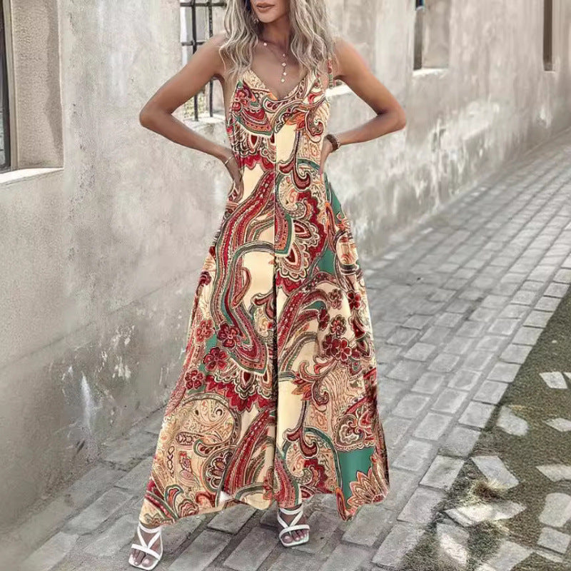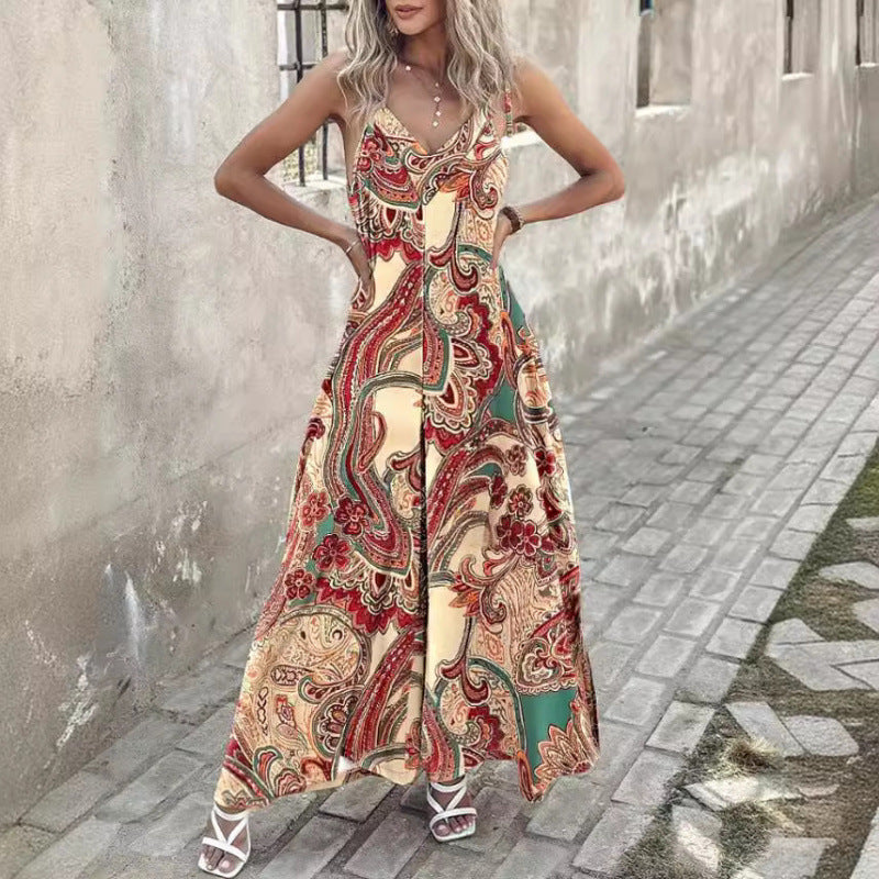 Augmentez votre garde-robe d'été avec cette magnifique robe maxi bohème pour femme, conçue pour apporter une touche d'élégance et de confort à toute occasion. Parfaite pour des sorties à la plage, des jardins ou des brunchs décontractés le week-end, cette robe maxi présente un motif paisley vivant et complexe qui ajoute une touche ludique tout en restant sophistiqué.