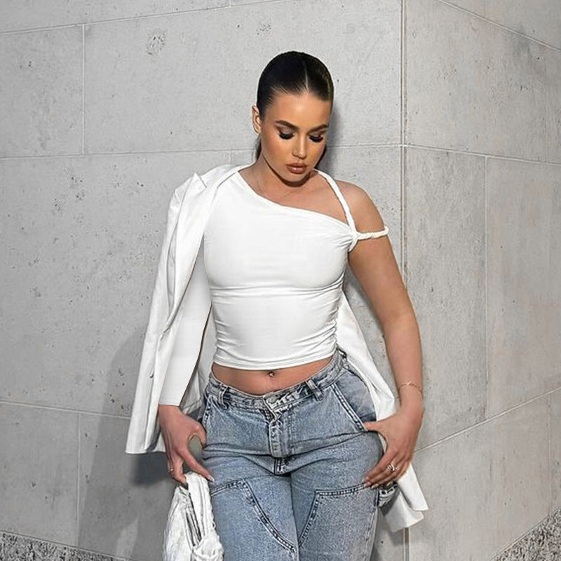 Dames haut asymétrique élégant avec bretelles spaghetti Chic und Stil