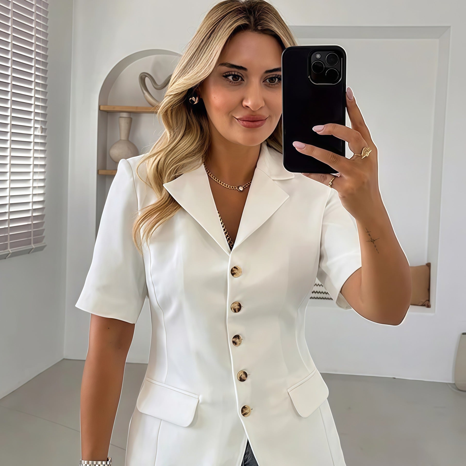 Dames Élégante Veste Courte avec Détails de Boutons Dorés Chic und Stil