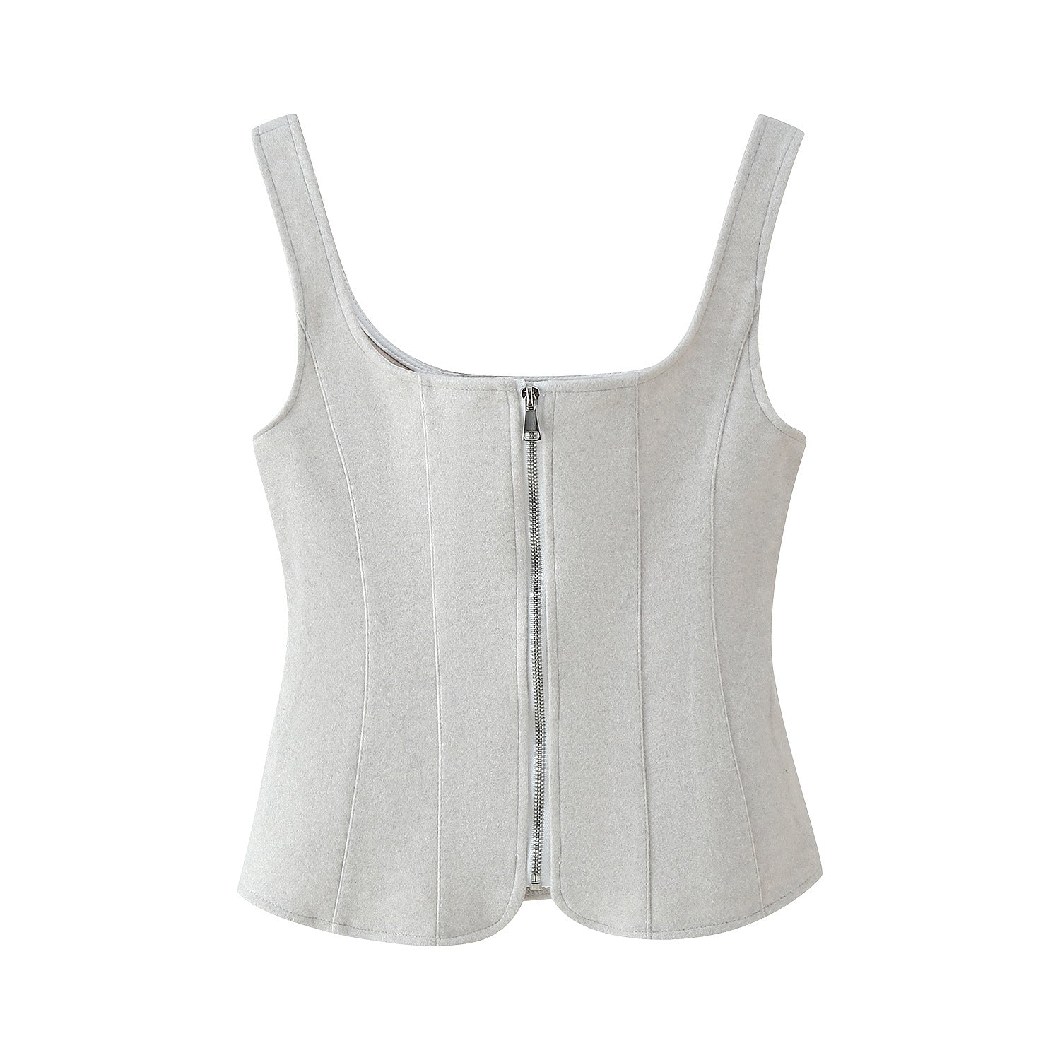 Notre haut bustier ajusté est le complément parfait pour toute garde-robe à la mode. Avec une élégante fermeture éclair à l'avant, il allie confort et style de manière harmonieuse. Fabriqué à partir de matériaux élastiques de haute qualité, ce haut offre non seulement une coupe flatteuse, mais aussi une sensation agréable à porter qui dure toute la journée.