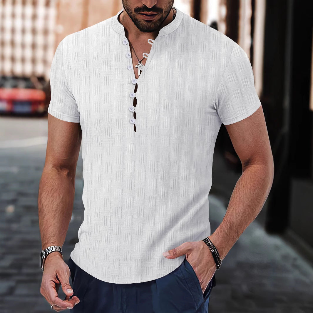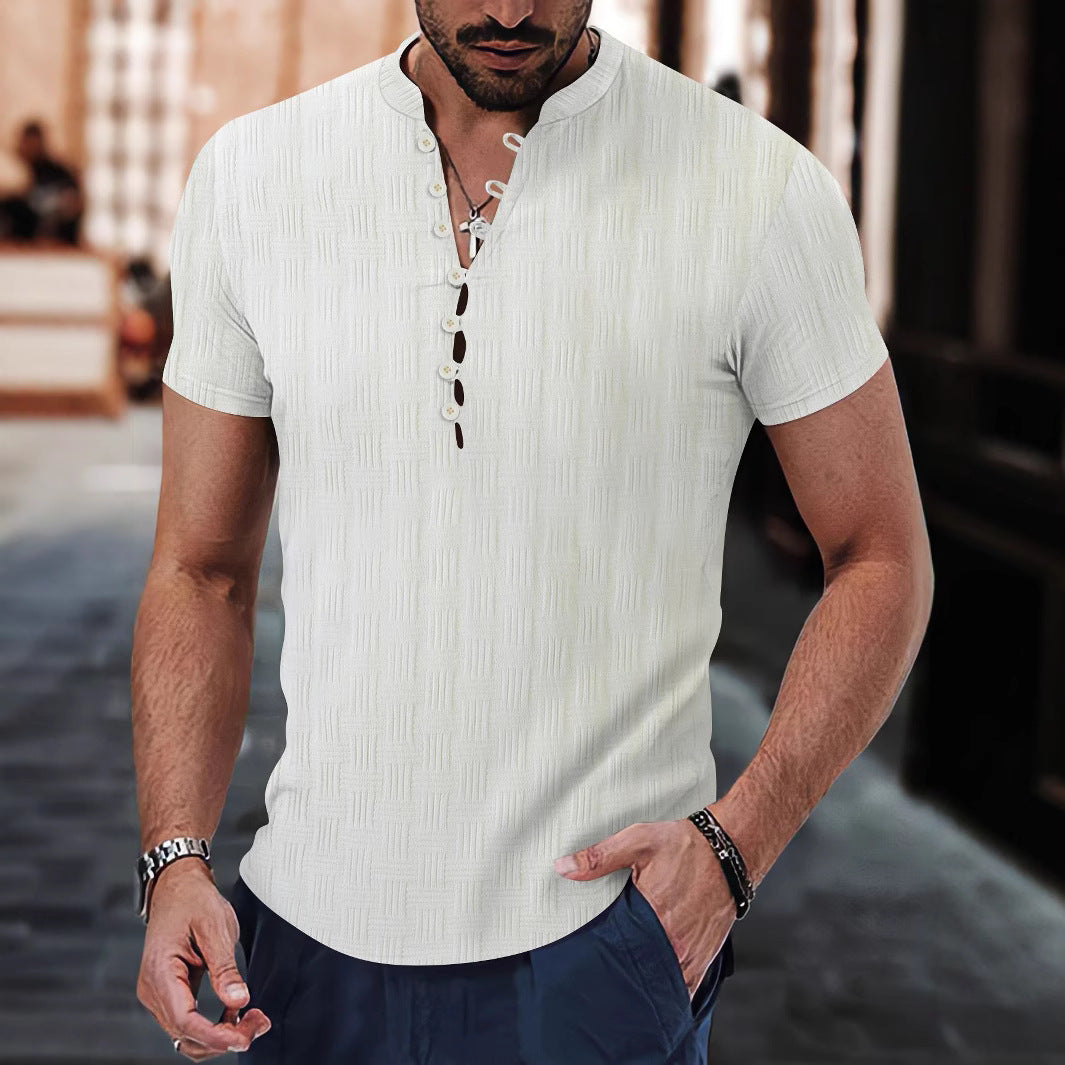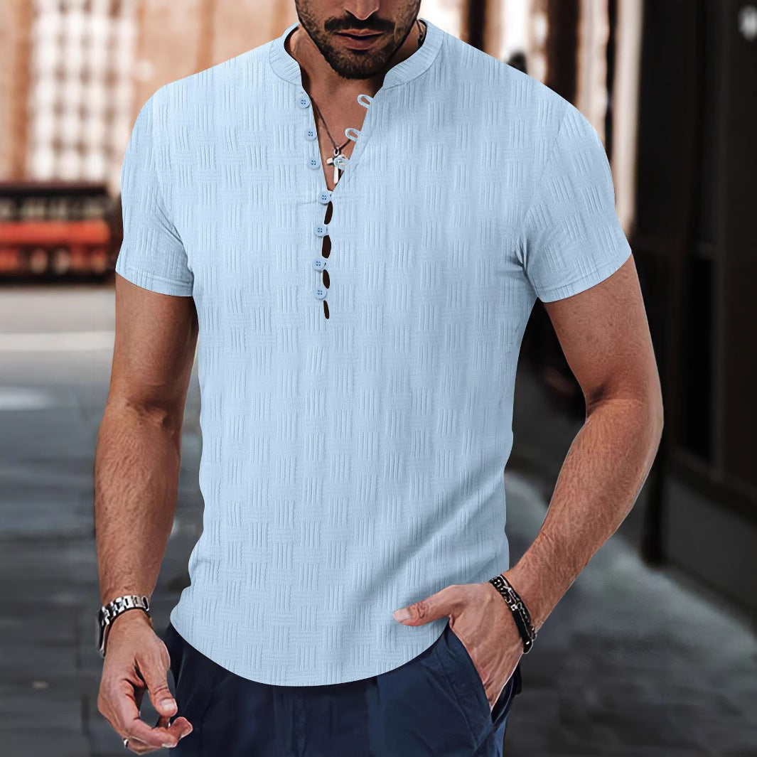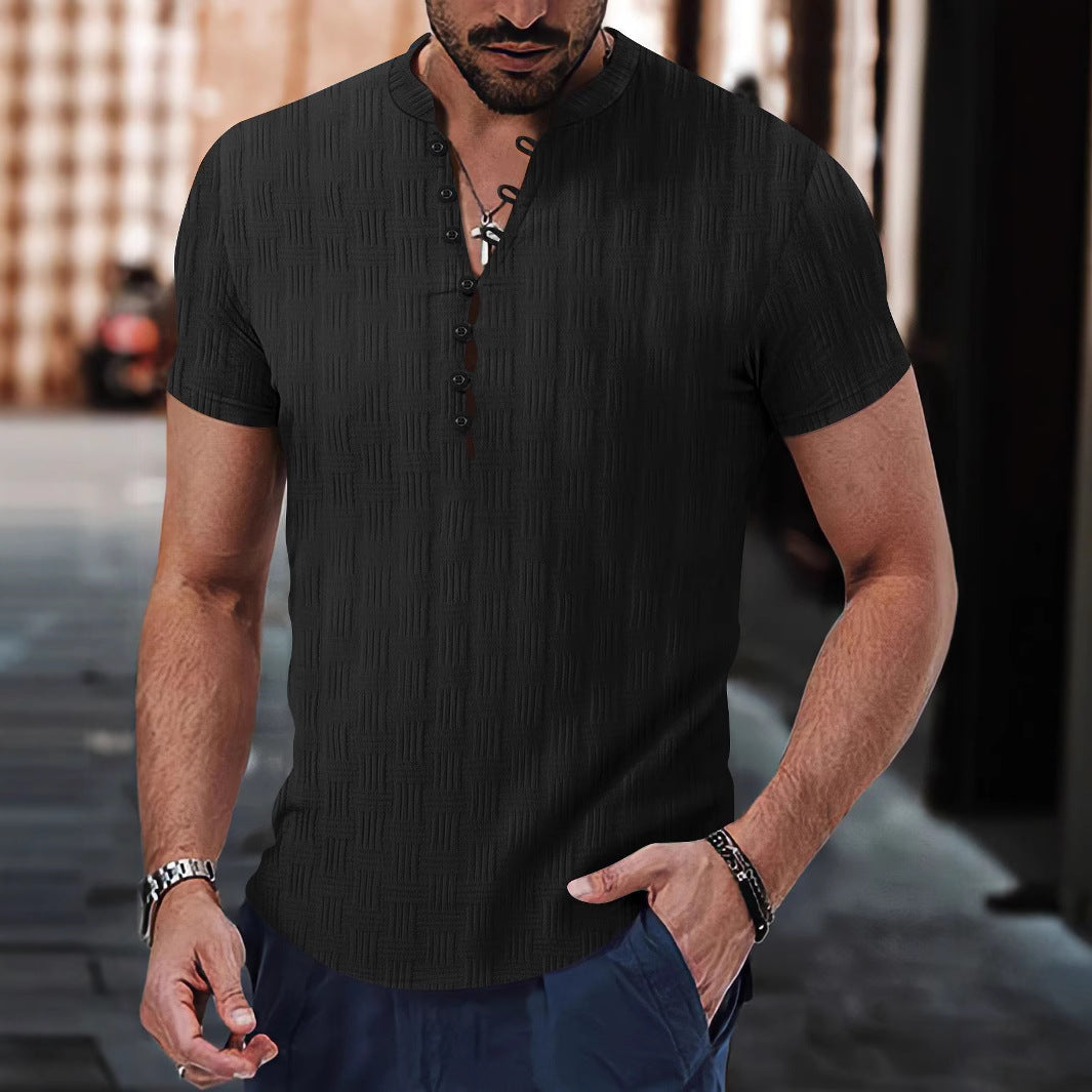 - Design : Surface texturée et col Henley moderne avec des boutons pratiques.
