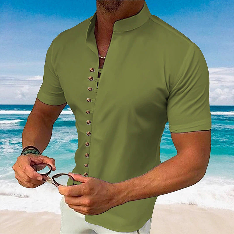 Cette chemise est plus qu'un simple vêtement; c'est une déclaration de style. Que vous alliez à la plage ou que vous rencontriez des amis pour le déjeuner, la chemise pour homme à col mandarin de Chic und Stil est votre choix ultime pour des looks élégants sans effort. Adoptez la mode moderne et faites une impression durable dès aujourd'hui!