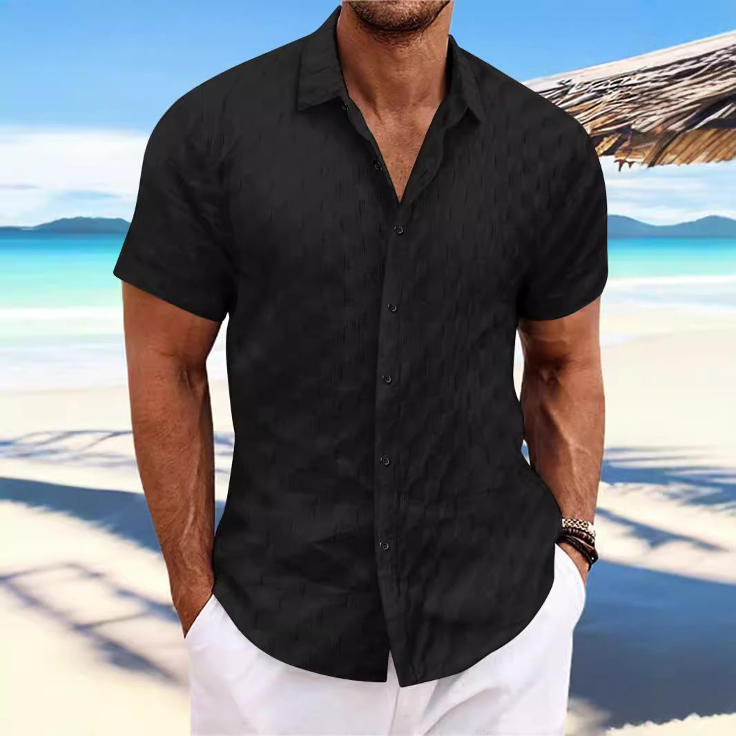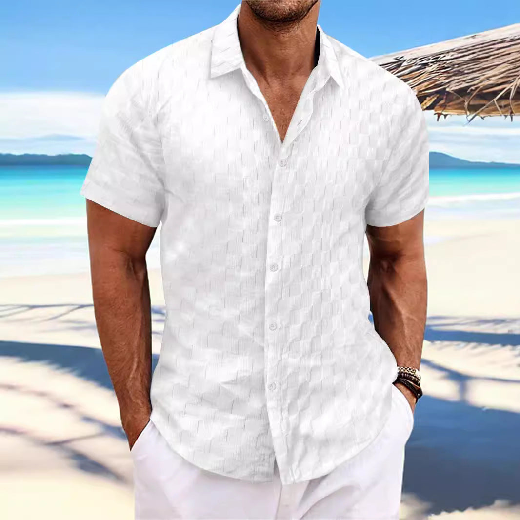 Plongez dans le style et le confort avec notre chemise décontractée à manches courtes texturée pour hommes de Chic und Stil. Ce vêtement polyvalent est idéal pour les journées chaudes et ensoleillées, offrant un mélange d'élégance et de charme décontracté.