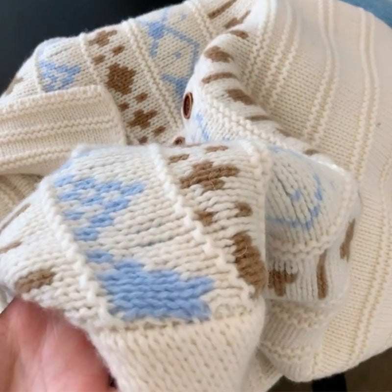 Découvrez le pull à grosse maille pour femmes de Chic und Stil, qui se distingue par son impression graphique soignée et son col romantique. Ce pull allie confort et style et est parfait pour les mois plus frais.