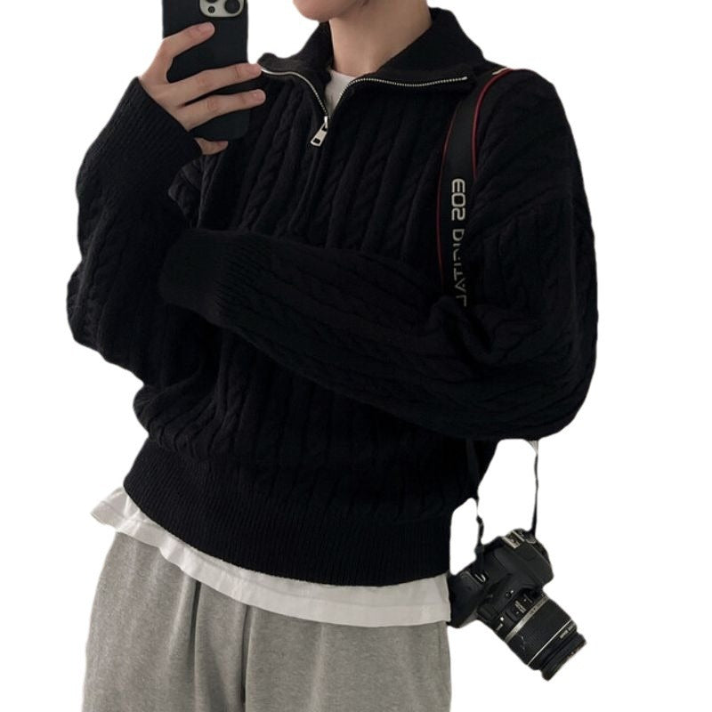 Pull en laine à tresses douillet pour femmes avec demi-fermeture éclair et larges poignets Chic und Stil
