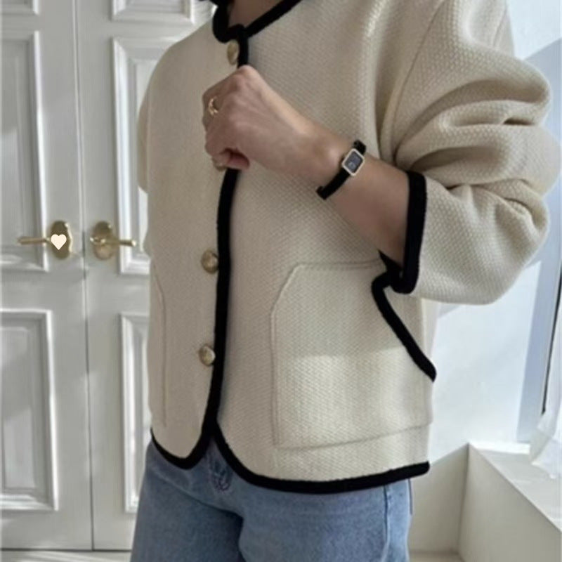 Cardigan pour femmes avec des boutons décoratifs et un col contrasté Chic und Stil