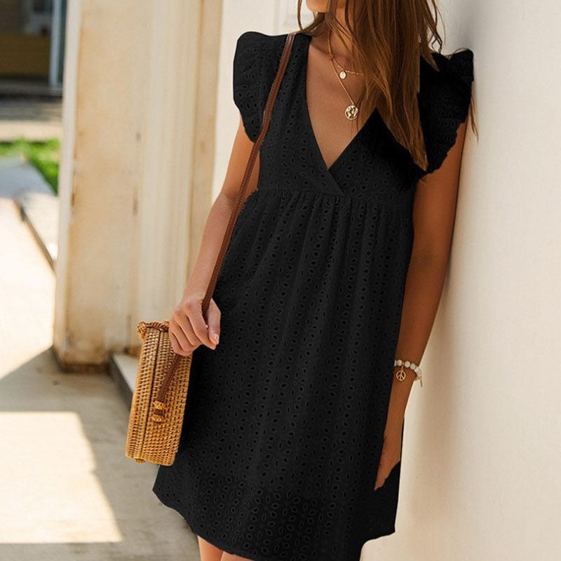 Robe d'été aérienne pour femmes avec un décolleté en V raffiné et des manches bouffantes Chic und Stil