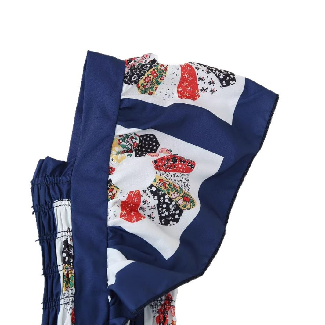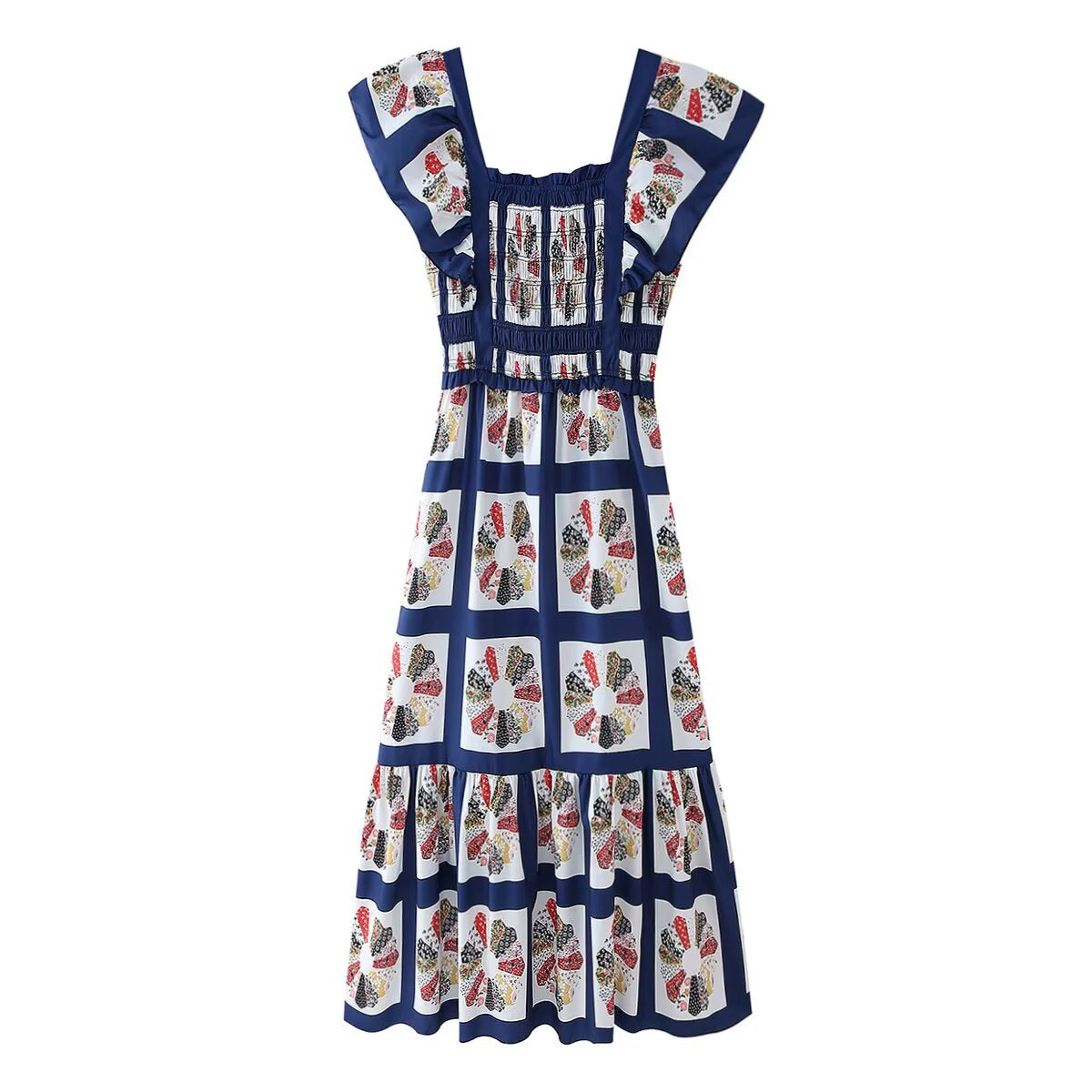 Découvrez la robe maxi élégante pour femmes avec des détails de volants raffinés et un design d'impression coloré unique de Chic und Stil. Cette robe combine des éléments stylés avec une coupe confortable, idéale pour des occasions spéciales ou des journées d'été décontractées.