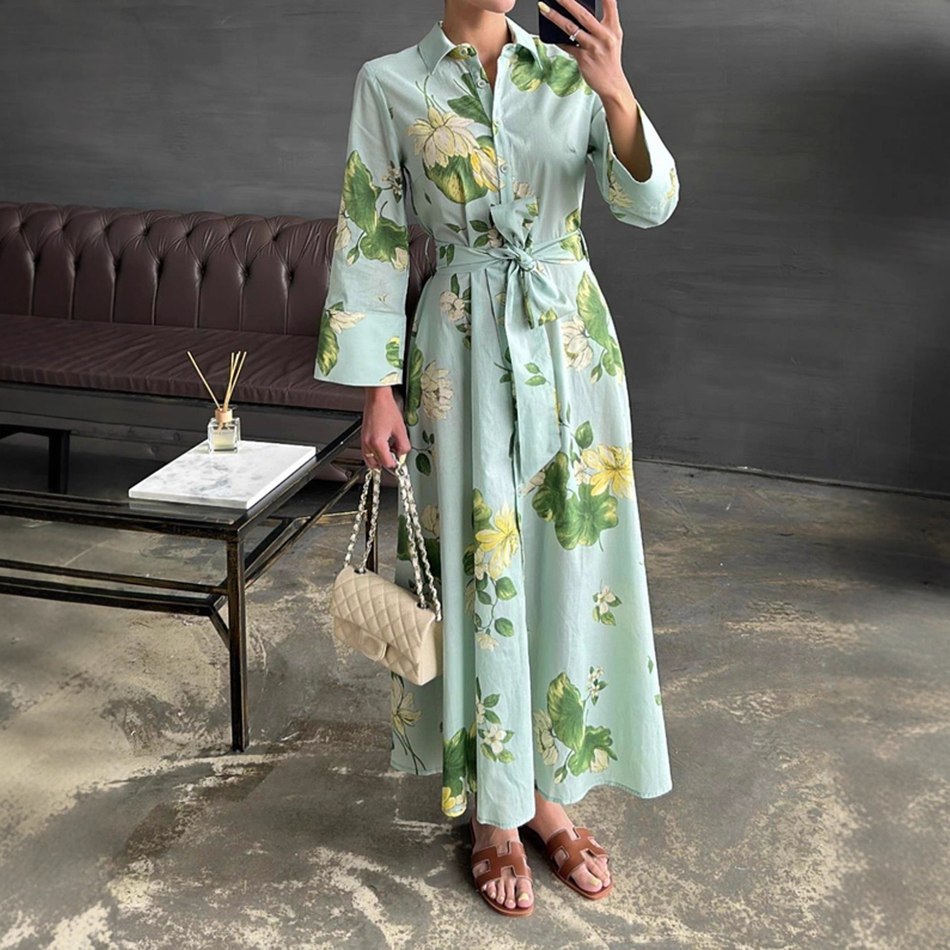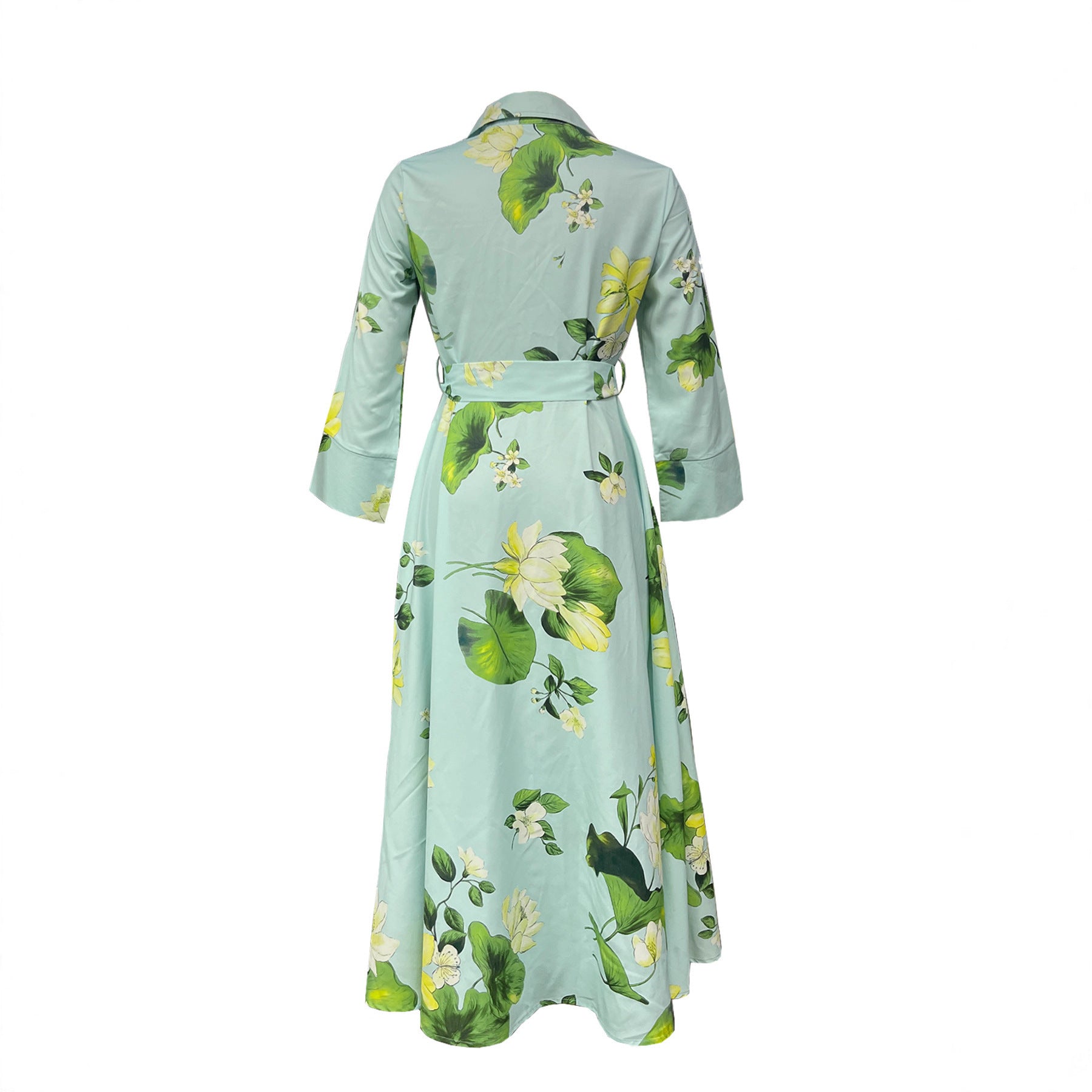 Avec une ceinture de style à nouer, elle met en valeur la taille et offre une silhouette féminine. Les longues manches et le col classique ajoutent une touche d'élégance à la robe, tandis que le design floral apporte un look frais et ludique.