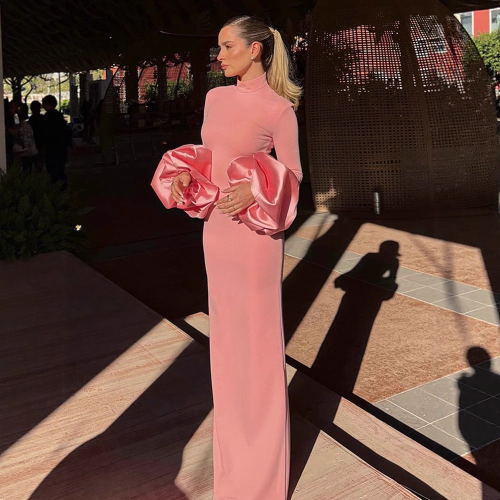 • Design : La robe possède un col montant élégant et de volumineuses manches, qui ajoutent une touche d'élégance à l'ensemble.