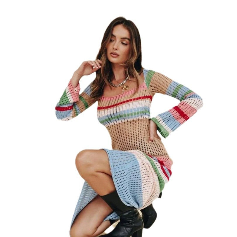 Robe maxi pour femmes en structure en maille légère avec motif rayé tendance Chic und Stil