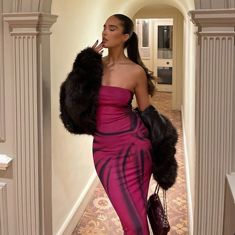 Glissez-vous avec style dans cette superbe robe maxi ajustée sans bretelles, spécialement conçue pour la femme moderne qui aime faire une impression. Cette robe a une silhouette élancée et près du corps qui met en valeur vos courbes naturelles et vous assure un look fabuleux pour toutes les occasions.