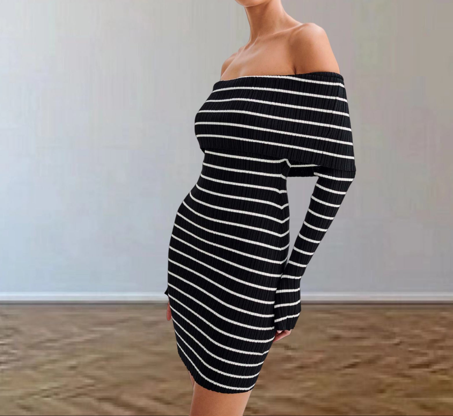 Découvrez la déclaration de mode parfaite avec notre robe en tricot élégante à épaules dénudées, spécialement conçue pour les femmes soucieuses de leur style. Cette robe allie confort et style de manière unique.