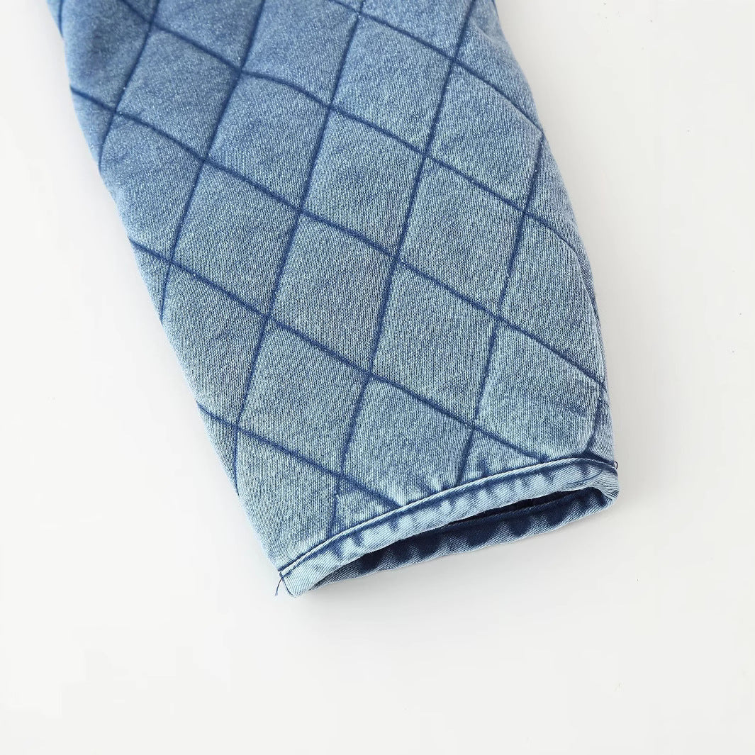 - Design : Élégante matelassure en losanges avec des coutures contrastées, conférant à la veste un look contemporain.