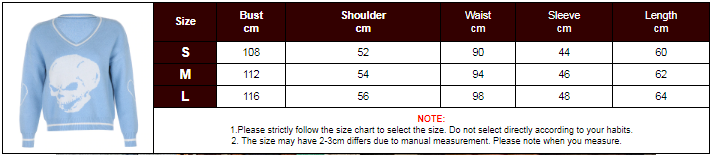 Pull avec col en V et design de crâne, fabriqué en tissu tricoté et en acrylique