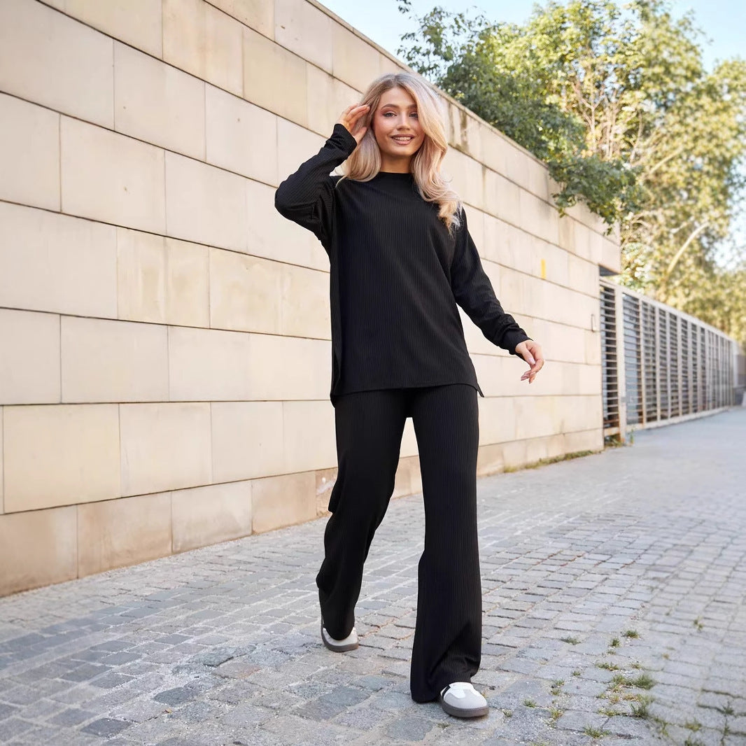 This ribbed set from Chic und Stil is ideal for remote work, leisure activities, or as a stylish outfit for get-togethers with friends. Pair it with sneakers or sandals for a casual look!