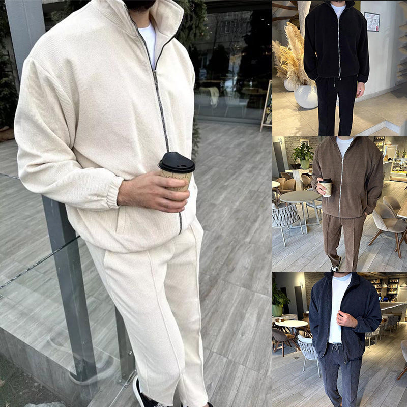 Costume de loisir pour hommes en matériau cordé doux avec une grande respirabilité et une fermeture éclair pratique Chic und Stil