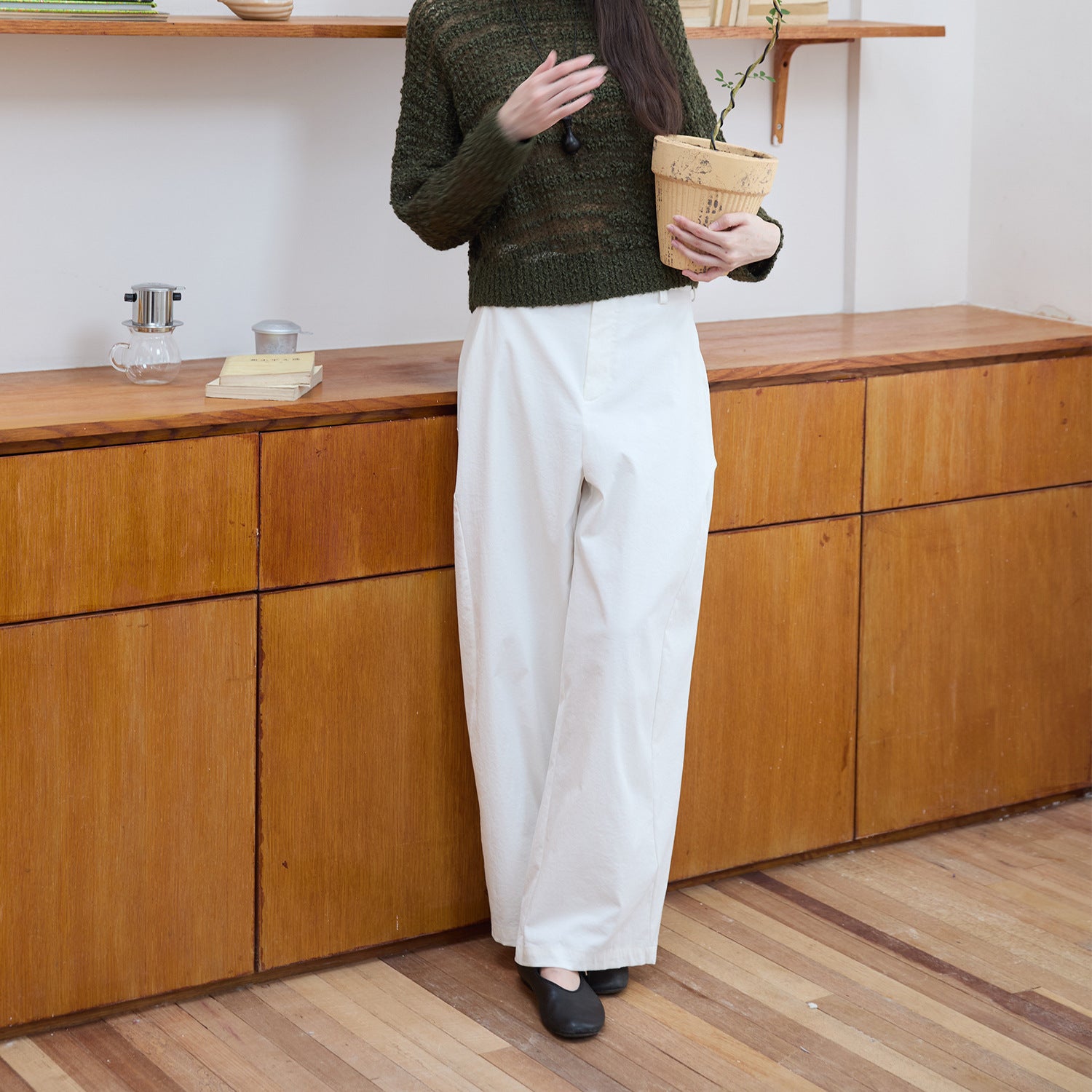 Wide cotton pants for women with a minimalist design featuring high pockets Chic and Style