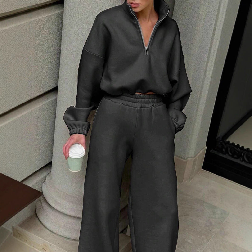 Dame hoodie en polaire avec demi-zip Chic und Stil