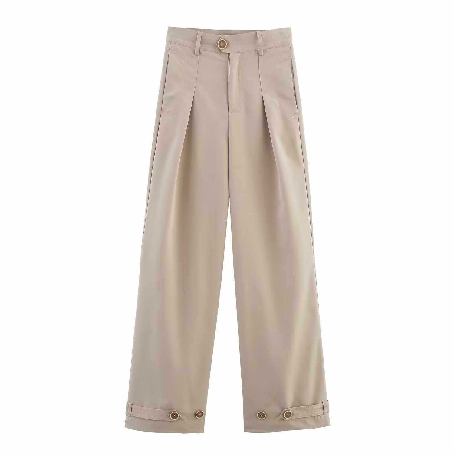 Damen weite hochtaillierte Stoffhose mit eleganten Knopfdetails Chic und Stil