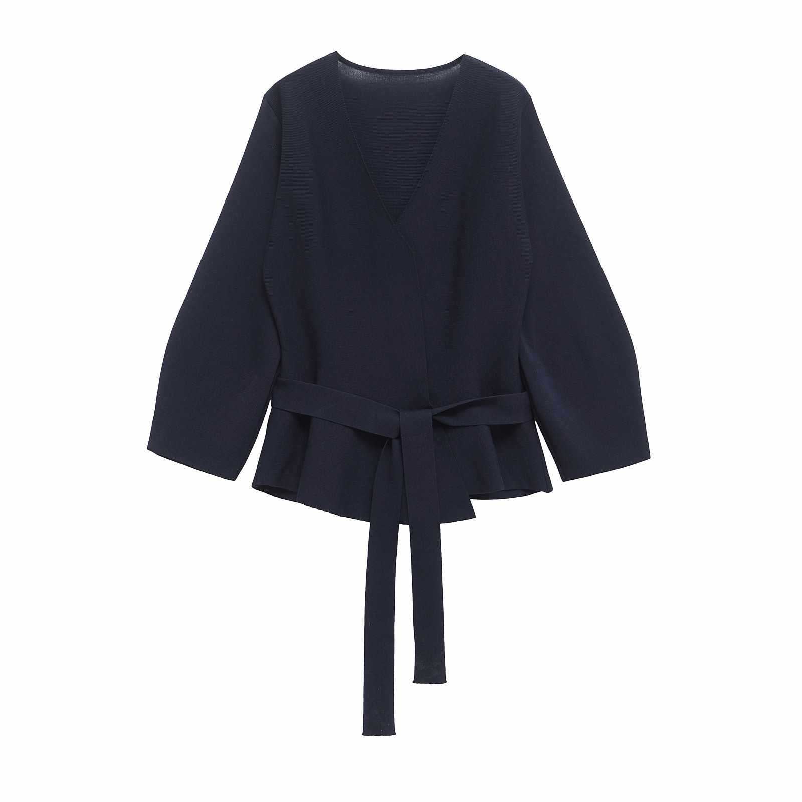 Damen Wickeljacke mit Bindeverschluss und voluminösen Ärmeln Chic und Stil
