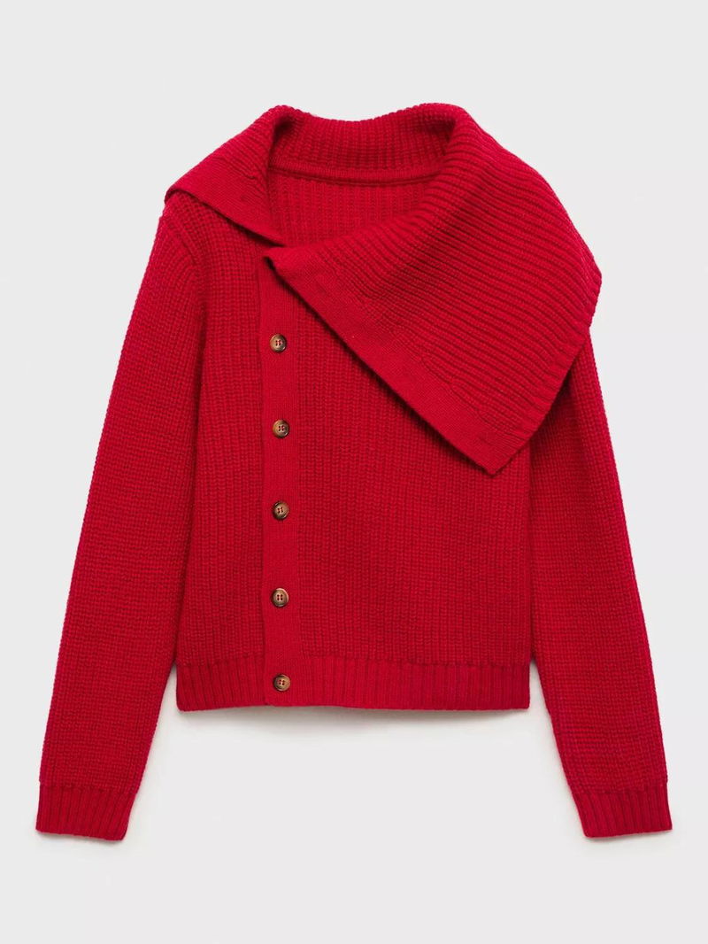 La patte de boutonnage avec des boutons décoratifs permet de l'enfiler et de l'enlever facilement tout en ajoutant une touche d'élégance à la veste. Le tricot de haute qualité offre non seulement une agréable sensation au toucher, mais aussi durabilité. Cette veste polyvalente peut être portée de manière décontractée ou chic.