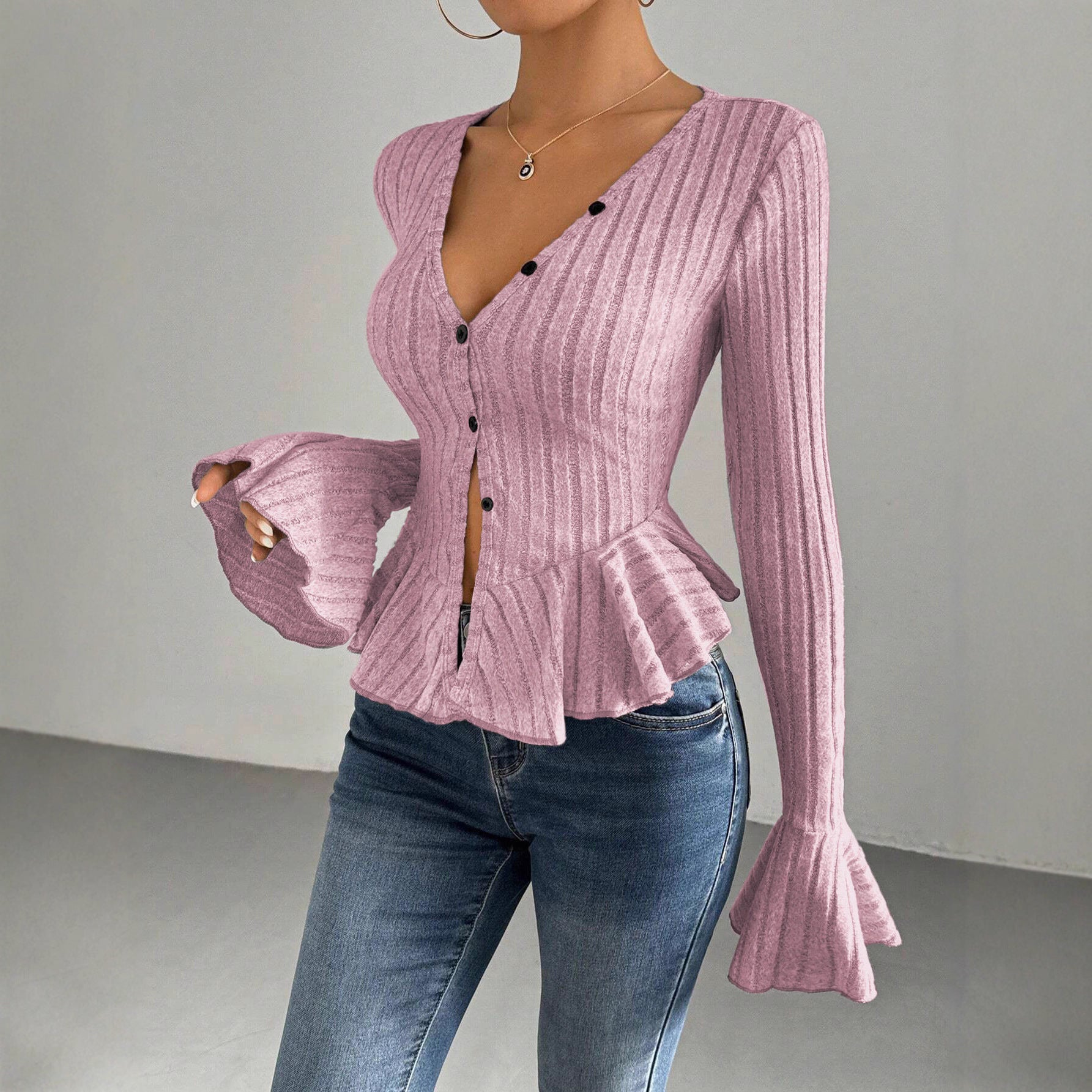 Dame tricot top avec design plissé raffiné et patte de boutonnage Chic und Stil
