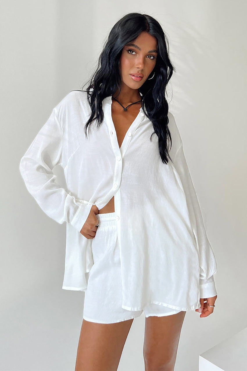 Ensemble de pyjama décontracté et aérien pour femmes avec chemise à bouton et shorts Chic und Stil