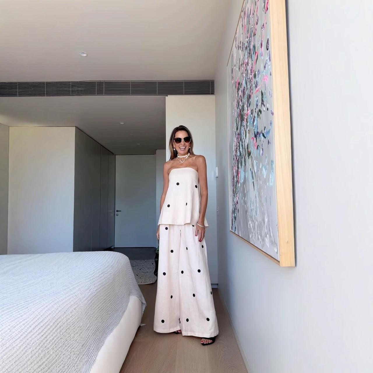 Women's set consisting of a sleeveless top and wide polka dot pants Chic und Stil